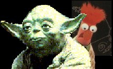 "meep", and Yoda, wise old Jedi Knight, with a funny way of going about