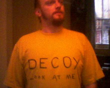Now that security had been stepped up at the Blaine compound, and we were becoming a high profile gay operations, we needed proper tactics. This didn't really involve going to look at the box, and assessing risks and opportunities. Instead, I bought six blank T-Shirts and wrote stuff on them,