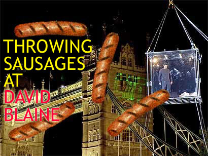 September last year, my mate Neil said "let's go and throw sausages at David Blaine". In the spirit of getting pissed and flinging meat, I got carried away and invited London. I'm not a revolutionary, an anarchist, or Dave Gorman. All I wanted to do was throw sausages at David Blaine.
