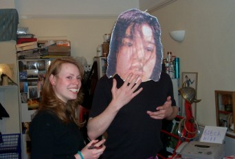 Here I am, with Sandy. I have just told a cheeky joke. Sandy is smiling. I always wait for people to smile before I tell a joke, and then I tell it really quickly so they don't have time to stop smiling before I finish the joke. Sandy is here with me at the moment, aren't you? Yes. I was Great! Thanks, Sandy. Make a cup of tea, would you? No, it's OK, you don't have to type your answer. It's not YOUR website, is it? (Can you see the fax I am sending to Janet Jackson?) |