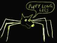 The Puppy Long Legs has the head of a puppy, supported by enormous spindly legs. It is as big as a room, and as a result of this can never leave the room in which it was born. As it is born, it slithers out with a triumphant cry of "Puppy Long Legs!" It is then silent until the day of its death, when it says "Puppy Long Legs" again.