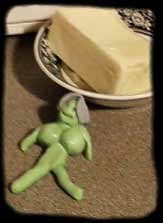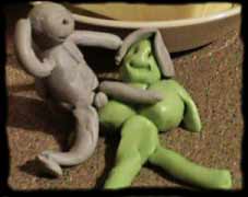 "That's quite alright," replied the green Fimo lady, whose name was Jane. "It can become lonely, here by the butterdish. I am glad of the company." "I understand," nodded Simon, and started to whap his willy over her boobs. |